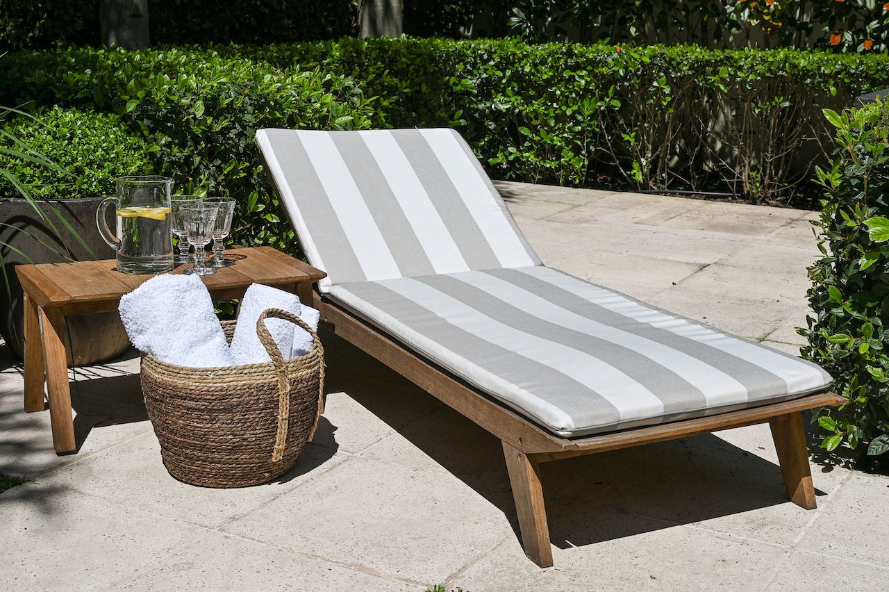Colchoneta de 5 cms de espesor para reposera en tela Sunbrella. Sin fuelle.