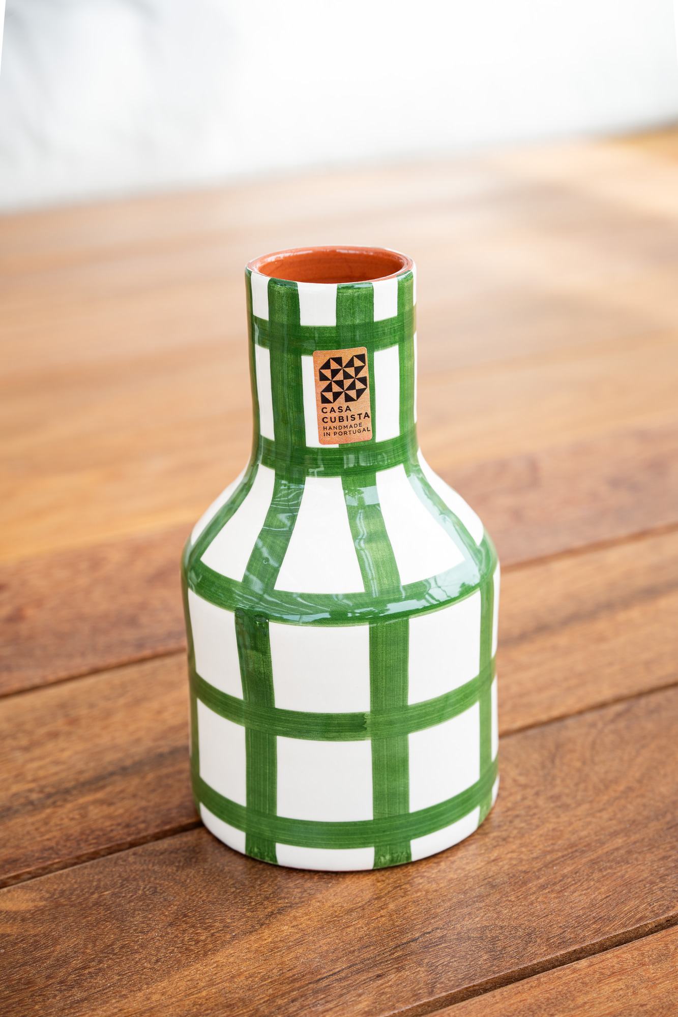 Florero grande. Medidas: 11.5 cms x H: 21 cms. Pieza en cerámica artesanal hecha a mano en Portugal. Piezas únicas e irrepetibles. Es posible encontrar diferencias entre las diferentes piezas, es parte del encanto del trabajo artesano.