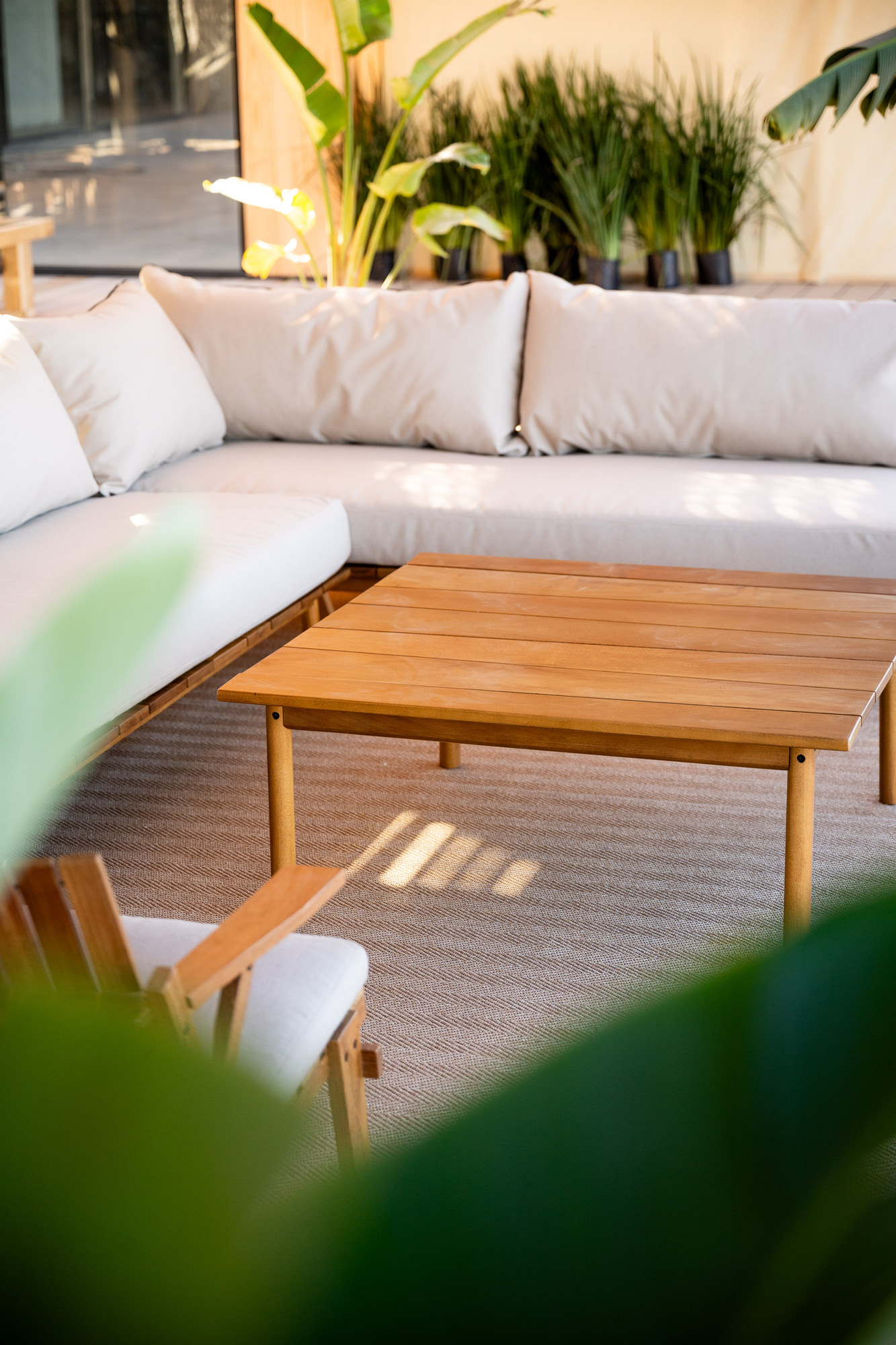 Mesa ratona de madera Garapeira. | Medidas: largo 120cm | ancho 120cm | altura 25cm