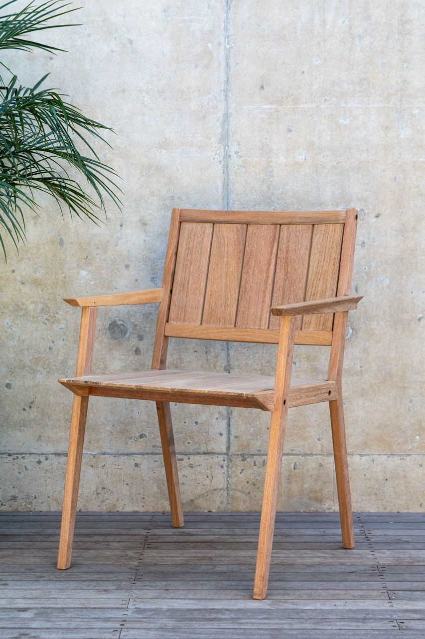 Silla con apoya brazo en madera Cumarú. Medidas: Altura: 83cm | Largo: 59cm | Profundidad: 56cm