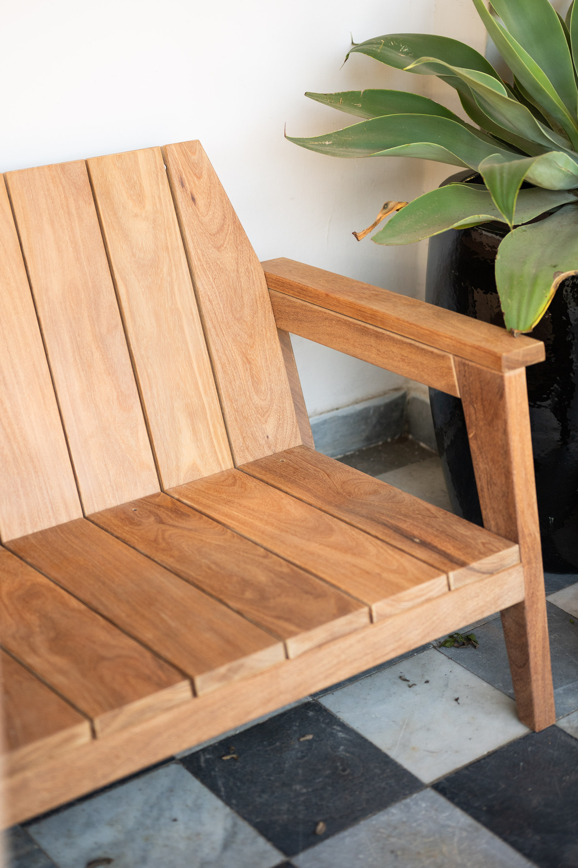Es un modelo que sirve tanto para usar con o sin tapicería. Las fotos son ilustrativas. El sofá sin tapicería viene sin almohadones. El sofá con tapicería incluye el almohadón del asiento y dos almohadones de respaldo, en color de tapicería Sunbrella a elección.